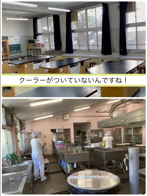 また、給食調理室も建替えとなります。空調機はついていません。老朽化建替でも新設されても空調機設置はしないとのことでした。
