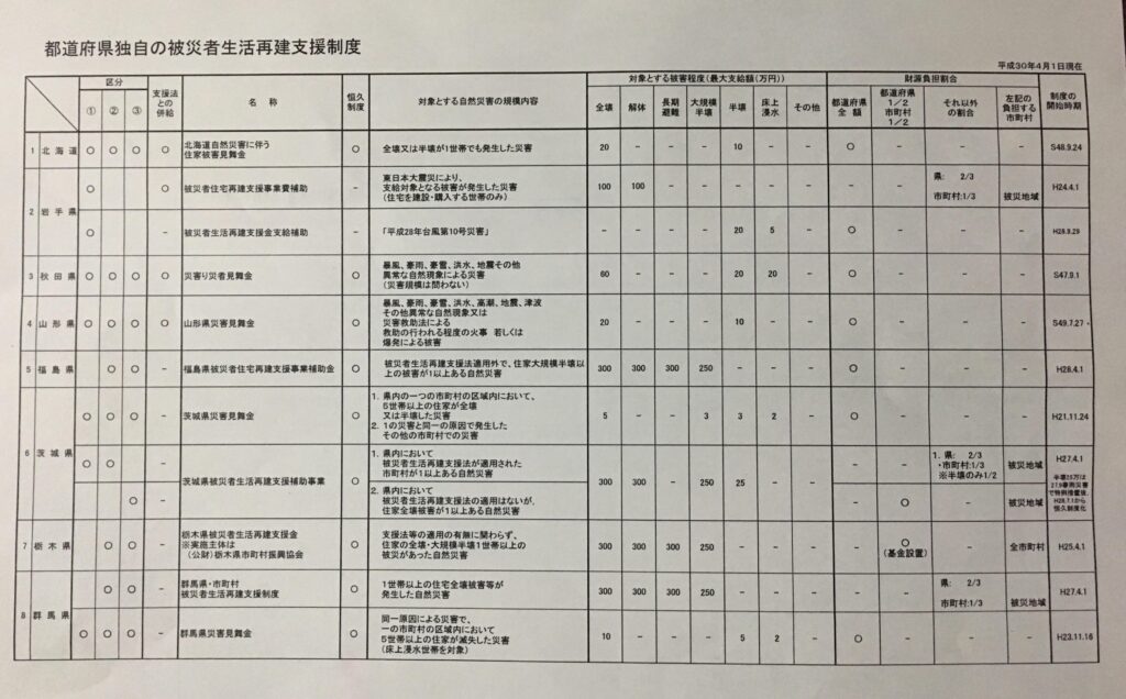 都道府県独自の被災者生活再建支援制度 (平成30年 4月 1日 現在)