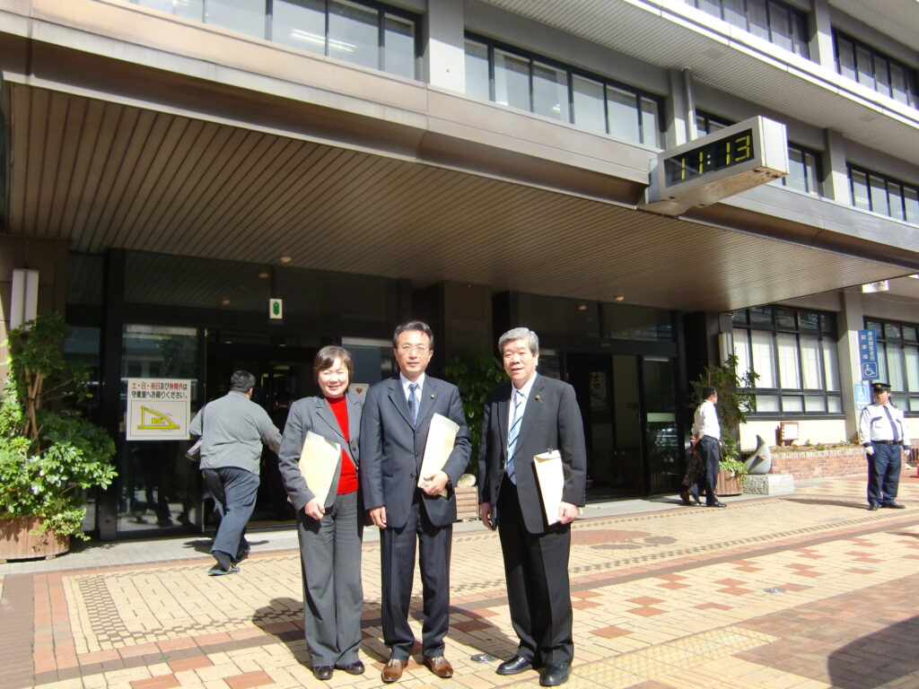 長崎市役所にて。。。 (中央 本人)