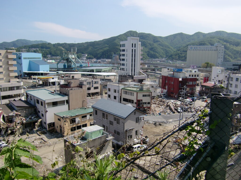 釜石市の高台から見渡す風景・・・街は地震の被害より津波の被害が甚大でこれからの支援こそ重要です。