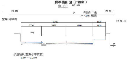 市立聖賢小学校の南側歩道・拡幅工事の”設計図”が出来あがりました。