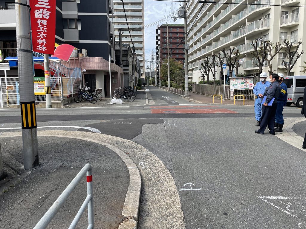 通学路の安全確保のため、地域の見守り隊・学校・建設局・城東警察署など関係者と現場立会し安全対策を協議