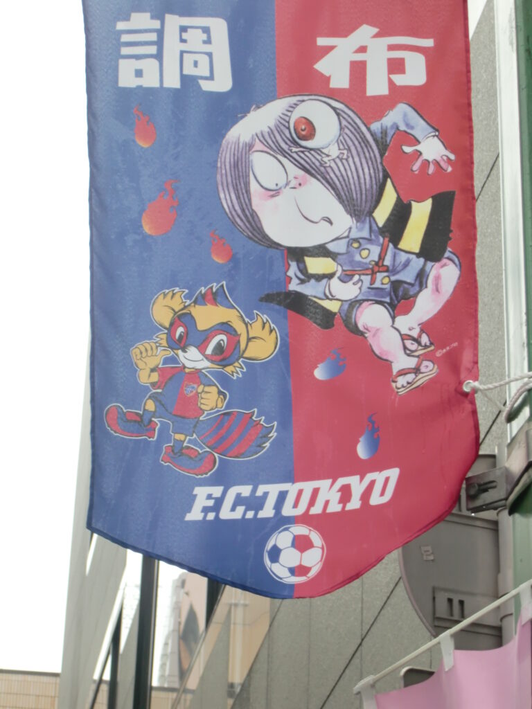調布市の北側にある”天神通り商店街”に、鬼太郎をはじめとした妖怪のモニュメントが