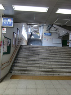 鴫野駅の改札から京橋方面へのホームまでの階段です。全部で41段あり、バリアフリー化が遅れていて多くの利用者の皆さんから苦情・ご意見を頂戴しています。