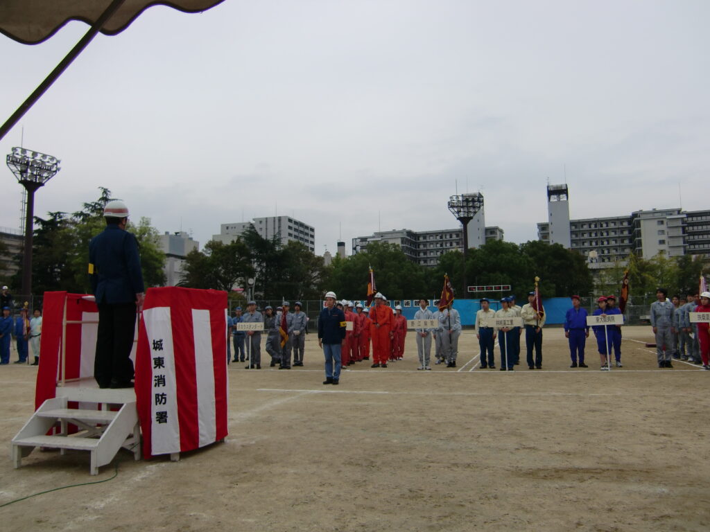 城東自衛消防技術競技会、開会式 (蒲生グランドにて)