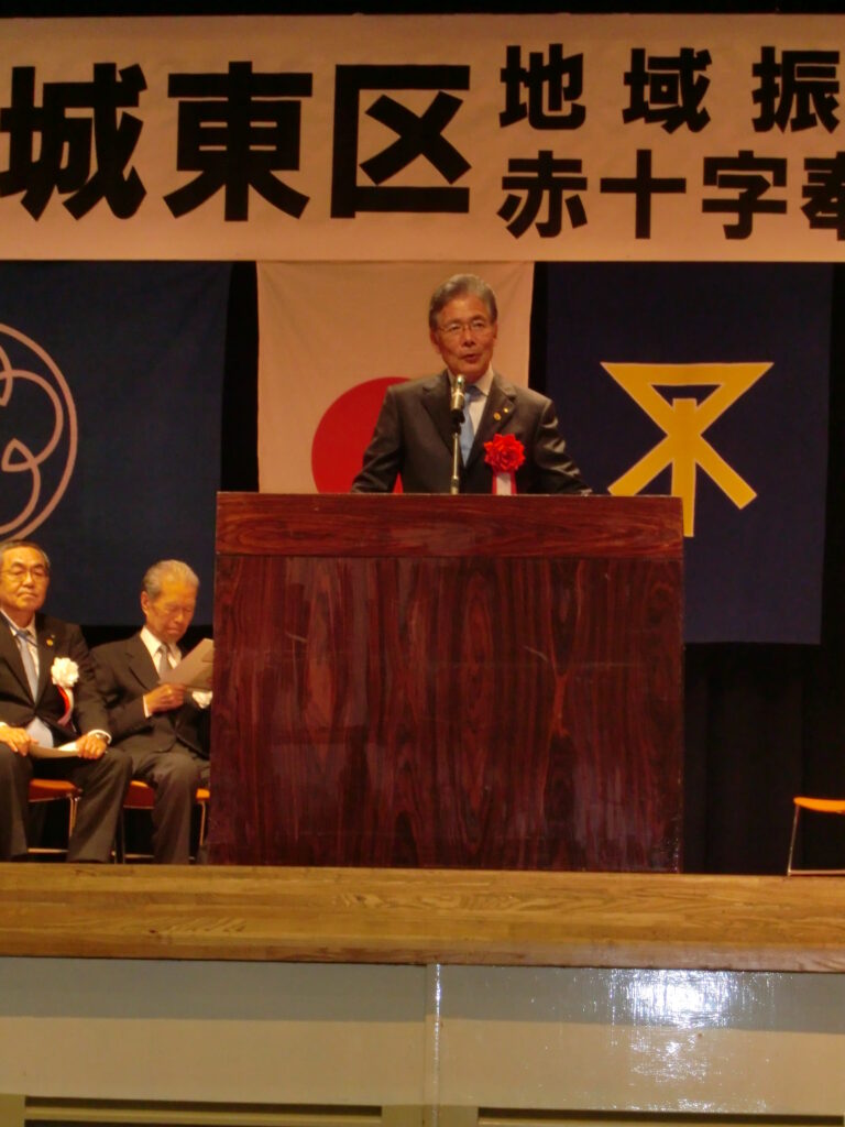 10/22(金)、平成22年度城東区地域振興会ならびに赤十字奉仕団の大会が、区民ホールで開催されました。多くの皆様方が参加のもと盛大な大会となり、平松市長もお祝いに駆けつけ挨拶をされました。